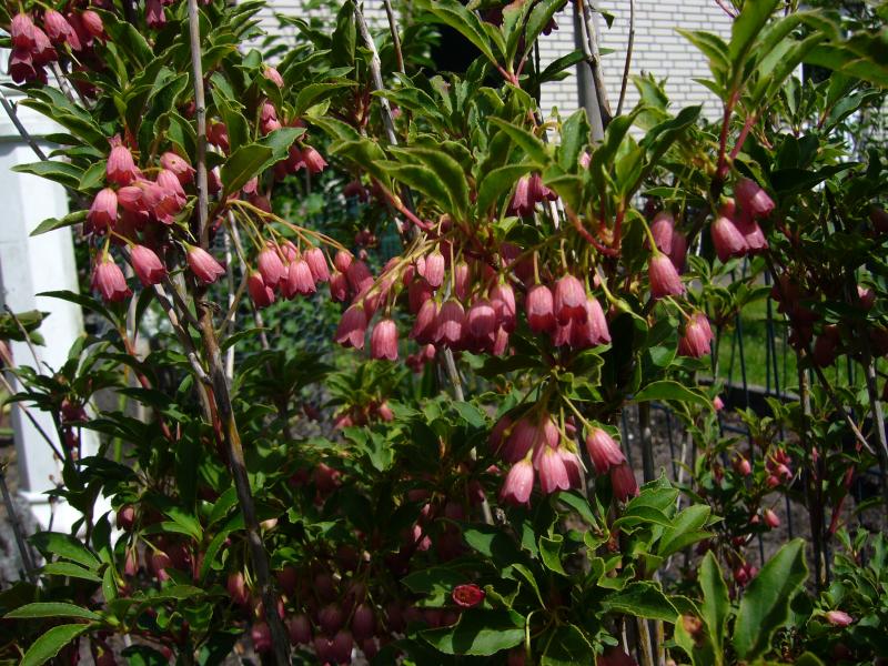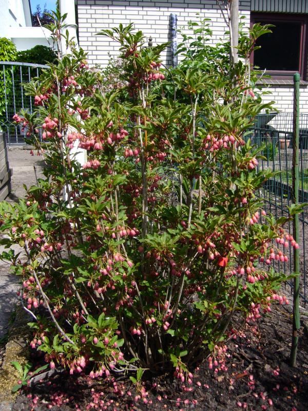 Neuerworben: Enkianthus cernuus "Rubens". Leider beginnen jetzt die Blütenglocken zu rieseln.
