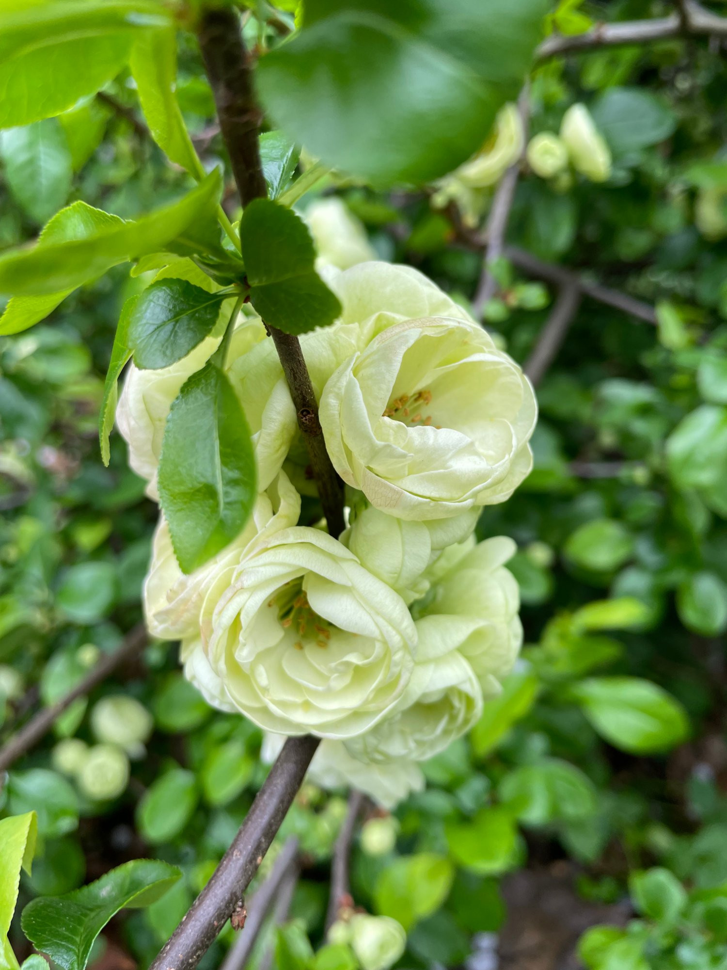 Exochorda racemosa 'Magical Springtime', im Vorjahr gepflanzt, hat nicht nur den Winter überstanden, er blüht auch wieder.