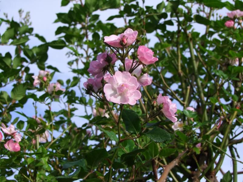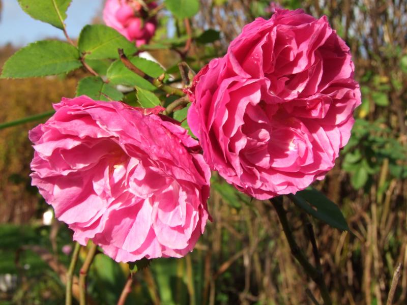 Hier überraschten noch ein paar Blüten von 'Schön Ingeborg',alte Remontante.Bei HMF wird sie mit 1,50m angegeben.Bei mir schafft sie immer nur etwa 1m.
