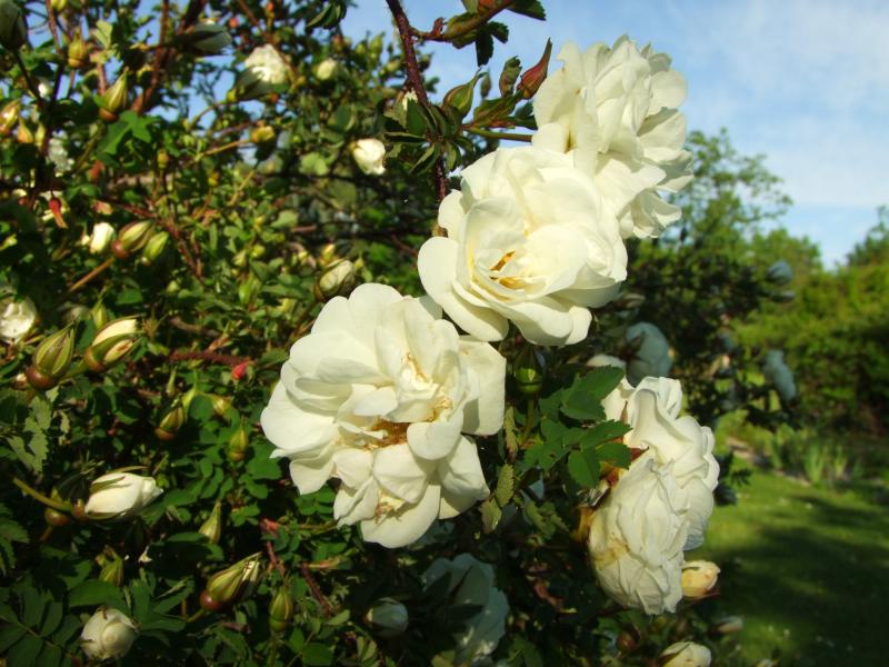 Die Inermis Morlettii wird von Jahr zu Jahr schöner! Weil ich sie letztes Jahr (leider) nicht geschnitten habe, breitet sie sich malerisch über den Wäscheplatz und die Himbeeren aus: