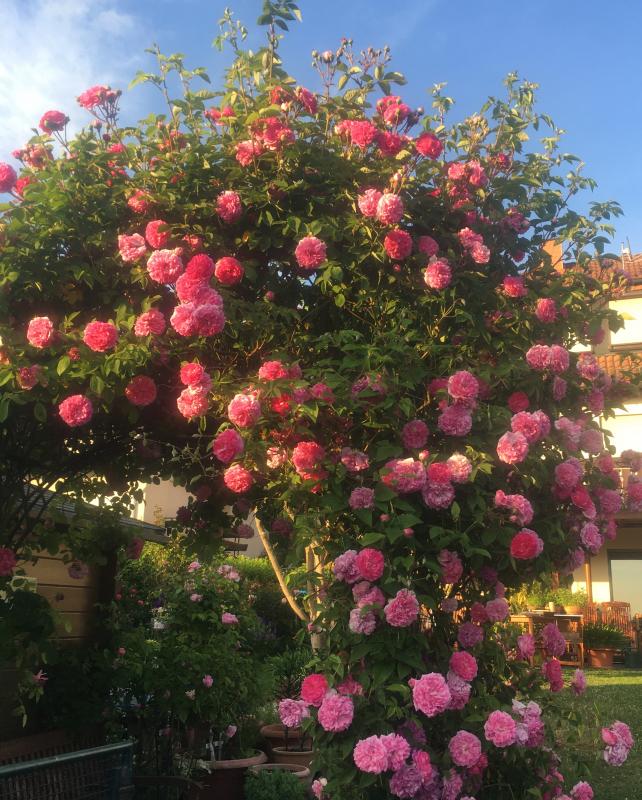 Eine schön duftende Rose, die ich vor vielen Jahren namenlos aus Norddeutschland bekam, am ehesten eine Gallica.