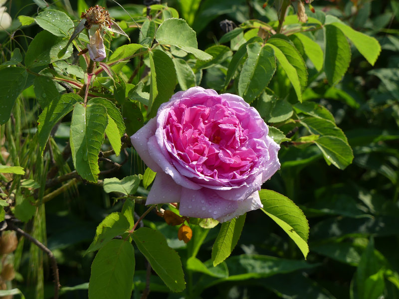 'Belle de Crécy' was das Foto nicht hergibt,im Vergehen haben die Blüten fast einen Graustich.
