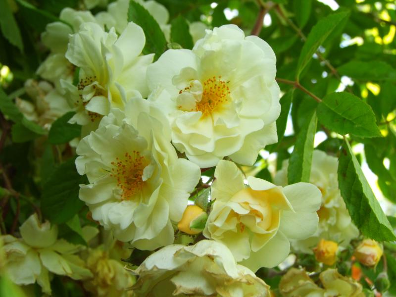 'Goldfinch' einmalblühender Rambler.Sehr schön,aber auffällig kurz blühend.