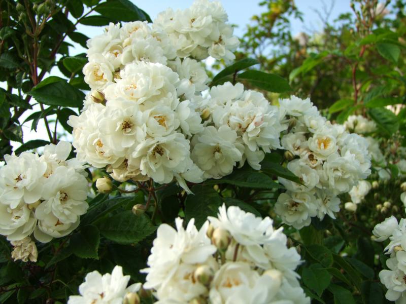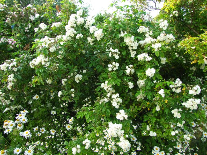 'White Blush'öfterblühende Albahybride von Sievers. Sehr schnell üppig werdend und große,gefüllte Blüten.