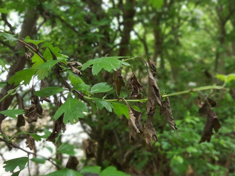Gestern fand ich abends an meinen 2 Spalierapfelbäumen viele welke Triebspitzen, die herabhingen. In Erinnerung an dieses Thema hier habe ich gleich alle unter gesunden Blättern abgeschnitten und entsorgt. Hatte keine Kamera dabei.