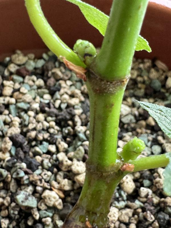 White Madeira #1 im November bewurzelt und Dezember getopft, bildet bereits Feigen in jeder Blattachsel.