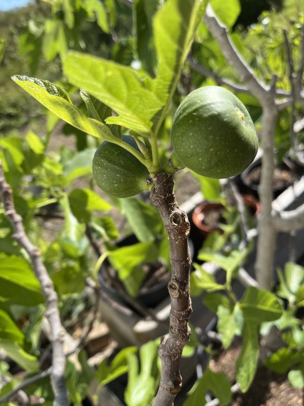 Ficcolino: 57 Tage nach Headstart (24.02.2024) 50 Brebas in Daumengröße. Wenn man Phantasie hat kann man die baldigen Herbstfeigen erkennen.