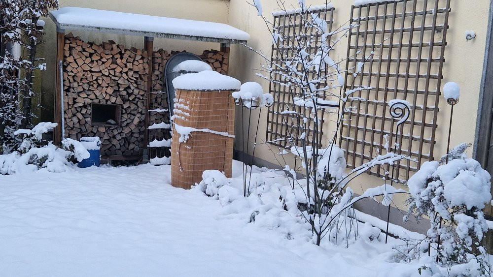 Und ich hab heute schon 5000 EUR verfeuert.Nach dem Blattfall gleich geschnitten, die Feigen. Trocknen, Anfeuerholz. Wertvollste Kattings gingen durch den Tschimni.