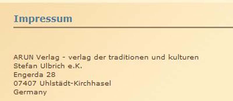 Sein Hausverlag Einer seiner Verlage ist bzw. war der Arun Verlag. Nun ja.....