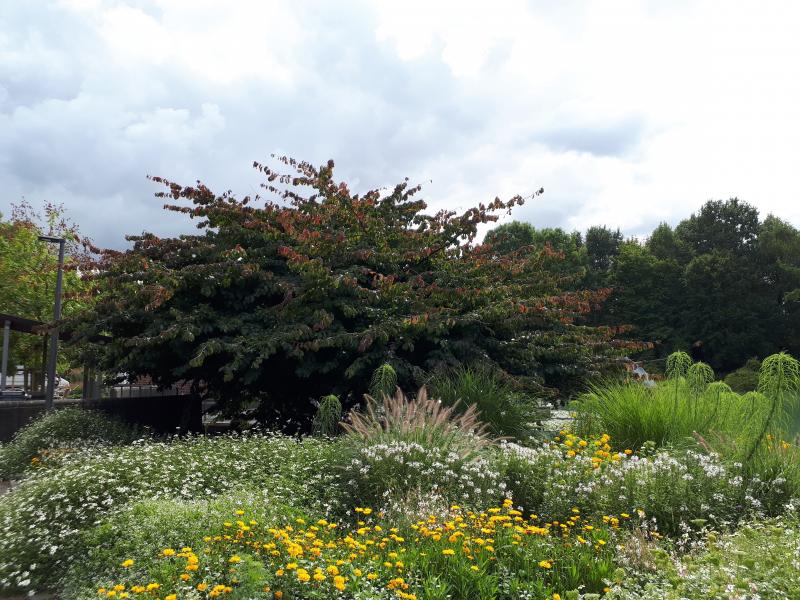Wäre die Parrotie bis unten beastet, würde sie ziemlich viel Raum einnehmen und der Baum ist jetzt noch jung (2010 gepflanzt)...