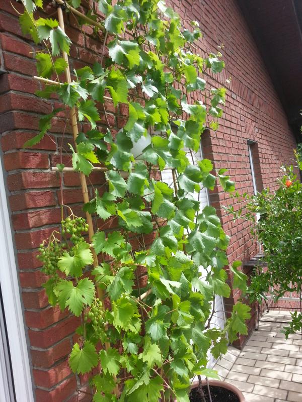 Ich kultiviere außer Granatapfel- und Feigenbäumen in Kübeln auch Tafeltrauben in 45cm-Kübeln auf dem Balkon. Meiner Meinung nach funktionieren Wachstum und Ertrag der Tafeltrauben sehr gut als Topfkultur. Letztes Jahr erreichten die Neutriebe bis zum Herbst eine Höhe von ca 3,5 m. Auch die Trauben entwickelten sich gut.