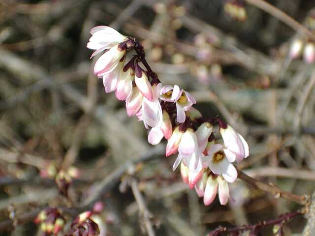 Ein bisschen OT:zusammen im Beet mit ausgepflanzten Zwiebelgewächsen stehen einige größere Stauden und Kleingehölze, die für Struktur sorgen. Eines dieser Gehölze ist Abeliophyllum distichum, die Schneeforsythie. Sie ist als Koreanerin zwar völlig winterhart, aber die Blüte im Freien fand ich jahrelang vollkommen unbefriedigend.