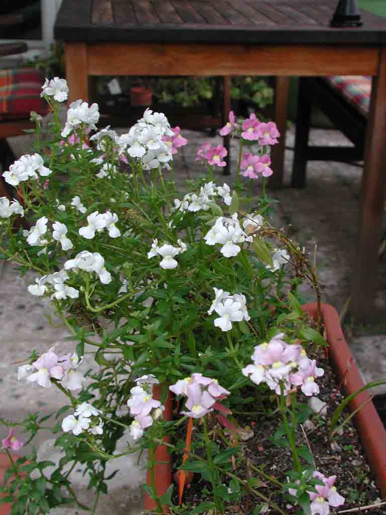 - selbst jetzt im Winter, wie dieses am letzten Wochenende gemachte Bild zeigt. Sie stehen jetzt natürlich im Kalthaus, weil winterhart sind sie nicht, aber das ist wohl der einzige Nachteil. Unsere drei sind alle pastellfarbene "Löwenmäuler", weiß, gelblich und rosa, also nicht die Farbknaller, aber dafür mit einem bei Wärme ausgesprochen starken Duft. Dabei sind sie gesund und auch nicht übermäßig anfällig gegen ungünstiges Wetter.Ich muß mal nachschauen, wie unsere Sorten heissen. Wer hat denn ebenfalls staudige Nemesien in Kultur?;)Ph.