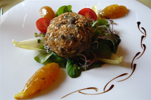 ooh, das sieht gut ausich war wie jeden Samstag in meinem Stammlokalerst gab es Ziegenfrischkäse in einer Kernenpanade, lauwarm auf Salat mit einem Kürbis-Bitterorangen-Chutney serviert