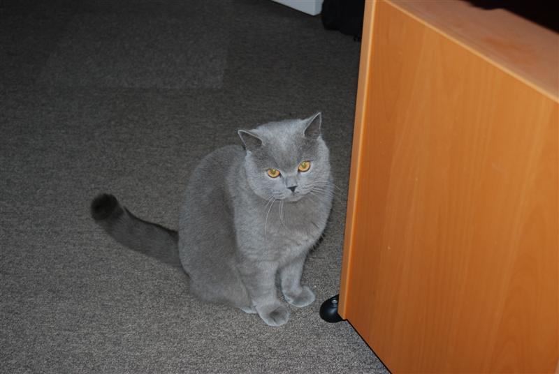 Hübsch der kleine Hellgraue. Würde sich gut zu Topolino machen, der den ganzen Morgen schon im Büro herumnervt und Lasermaus spielen will......
