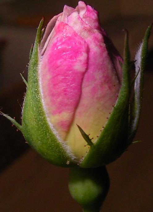 Danke für die Infos zu Terracotta sie muß aber draußen bleiben. Wenn sie das nicht aushält ist sie sowieso ungeeignet für meine Pläne.Diese völlig ungeplante Rose, ein Nebenprodukt meiner Hobbyzüchterei gewissermaßen, habe ich ja GG an seinem Geburtstag gewidmet und deshalb Familienvater genannt, und 2 Wochen vorher dazu auserkoren, weil sie als einzige meiner Sämlinge noch eine Knospe hatte und zwar ihre erste, also ein Überraschungsei. Und was für ein Überraschungs-Ei! Erst dachte ich, sie wird bräunlich, dann weiß oder creme, dann rötlich, dann bläuliches Rot bis dunkelpink, zum Glück wird sie wohl doch heller, denn bläuliches Pink mag ich gar nicht behalten! Aber ich kann sie ja nun nicht mehr weggeben, nach der Widmung! Gespannt verfolge ich jede weitere Regung: