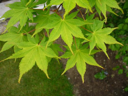Hallo Querkopf, danke für die sehr interessanten und nützlichen Ausführungen bezüglich der Wurzeln junger Eichen. Was meinen Ahorn-Sämling angeht hoffe ich auch daß er überlebt. Die Mutterpflanze hatte im Frühjahr gelbschattierte Blätter, was in meinen Augen besonders war. Im Sommer wurden die Blätter ganz grün, im Herbst orange. Ein Bild das Blätter im Frühjahr zeigt, habe ich angehängt. Zu 'Masukagami' schreibt van Gelderen, daß die Blätter im Frühjahr fast blutrot sind und später im Sommer sich zu einem rötlichen Grün hin verändern, "mit schwacher, manchmal fehlender, weißer oder gelb-rosa Farbvariation". Ich verstehe den Satz so, daß die weiße oder gelb-rosa Farbvariation in der Regel nur schwach ausgebildet ist und manchmal auch ganz fehlt. Es hängt vielleicht vom Standort und von den Bodenverhältnissen ab. Bei van Gelderen hört es sich jedenfalls nicht so an, als sei die weiße oder gelb-rosa Farbvariation das hervorstechende Merkmal und auch das Bild zu der Beschreibung in seinem Buch zeigt diese Variation nicht sondern zeigt rötlich überhauchte grüne Blätter. @Paulowniain den nächsten Posts siehst Du einige Bilder von einem sehr alten und prächtigen a. p. Dissectum. Er steht im japanischen Garten im Stadtgarten Karlsruhe, die Bilder wurden im Sommer gemacht. Im Frühjahr sind die Blätter rot, verfärben sich dann aber von innen heraus zu diesem Olivgrün das man auf den Bildern sieht. Grüße, Daniel