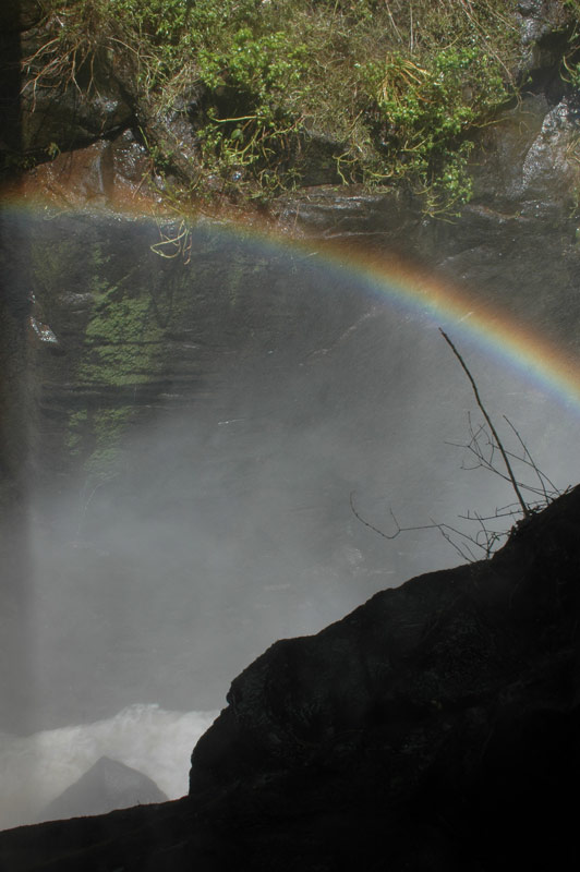 Meist ist der Wasserfall so stark, dass man nicht hindurchsehen kann, aber an ganz wenigen Stellen kann man Glück haben: