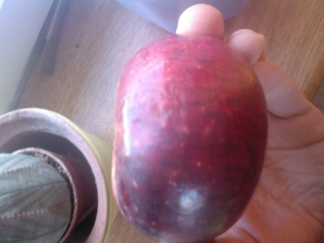 Hallo!Ich habe neulich einen neuen rotfleischigen Apfel entdeckt im Dorf meiner Eltern. Der Baum ist schon recht betagt, so an die 50Jahre und seit langem ungepflegt. Die Besitzer sind auch schon an die 70-80Jahre alt. Der Baum steht in Mittelsachsen.Sorte ist mir unbekannt. Es ist auf jedenfall ein später Apfel, PR erst ab Mitte/Ende Oktober. GR ab November. Die Äpfel sind immernoch recht fest und knackig, wird aber langsam mehlig. Auffällig ist die tiefrote Schale und das rötlich marmorierte Fruchtfleisch. Der Apfel duftet leicht und schmeckt leicht säuerlich ohne besonderes Aroma. Angeschnitten wird der Apfel kaum braun sondern intensiver rot.Die Kerne sind recht klein und sehr spitz zulaufen(echt spitz!!) mit einer auffällig über den Kern laufenden scharfen Kante an den Rändern und mittig auf nur einer der Seiten. In einem Kernhausfach befinden sich 3 dichtgedrängte Kerne.hier paar Handyfotos: