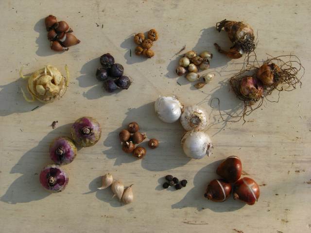 Kennt jemand vielleicht eine Seite, die Blumenzwiebeln und -knollen abbildet?Ich habe mir einen Wolf gegoogelt und auch alle Linkssammlungen durch, aber so eine Seite habe ich nicht gefunden. Fast immer werden die Blüten gezeigt, verständlich, aber im Moment nicht das, was ich brauche.Bei der Vorbereitung einer großen Pflanzfläche, die auch Teil der Zwiebelwiese ist, stoße ich auf Unmengen von Blumenzwiebeln und Knollen. Die meisten, vor allem die größeren oder typisch geformten, kann ich identifizieren.Die kleineren machen Probleme, vor allem, weil sie schon länger an dem Standort stehen, sich zum Teil stark vermehrt haben und schon längst nicht mehr das ehemalige Verkaufsformat aufweisen.