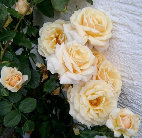 Ich finde sie hält sich gut in der Vase.Die blüten erscheinen etwas edler als New Dawn.Wenn du nicht auf extreme Kontraste aus bist finde ich Penny Lane an einer weißen Hauswand durchaus passend!