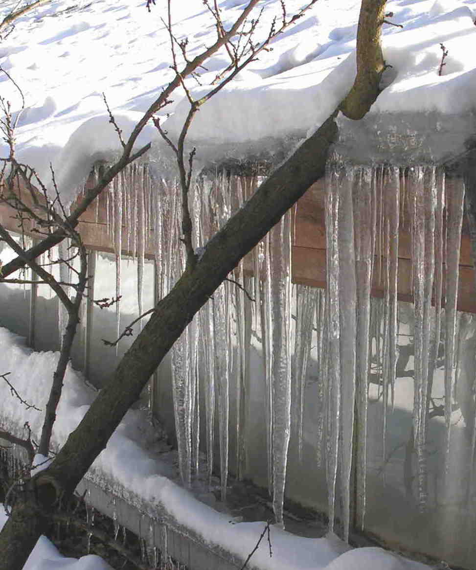 Bei mir lag heute im "Berggarten" 50cm hohen Schnee, in der Stadt zum Glück nur noch 15cm. Die Eiszapfen heute an den Kamelienhäusern in Pirna-Zuschendorf.