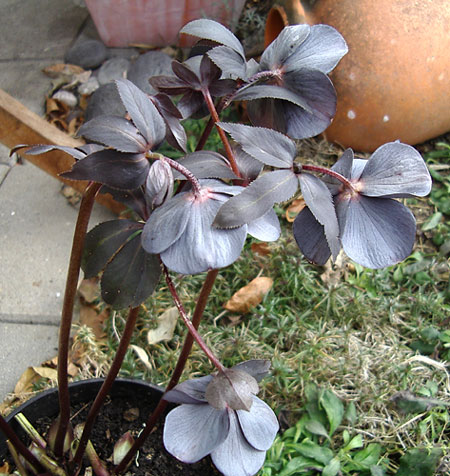 Wie auf Wunsch kam die Sonne ein wenig heraus. Und auch für diejenigen, die die Aussenwirkung der Helleborusblüten bemängeln, ein Foto der ganzen Pflanze.Muß man diesen Blüten unbedingt ins Gesicht schauen können?