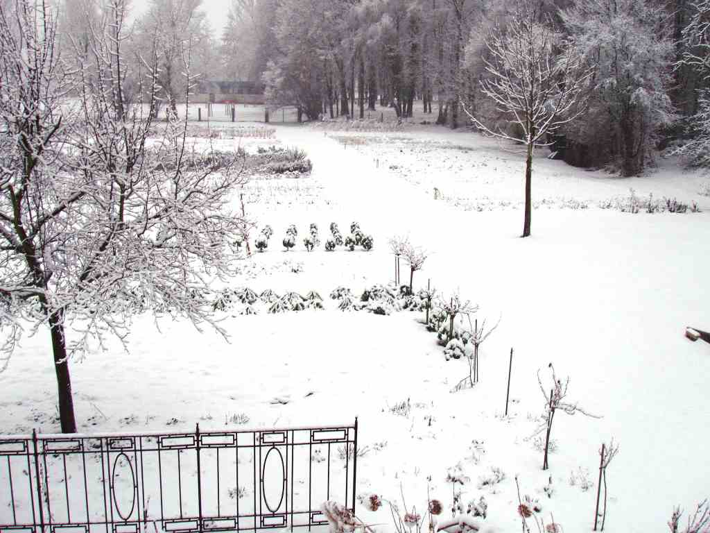 So sieht es bei uns auch wieder aus. Es hat heute Nacht wieder geschneit, so dass alles wieder gleichmäßig weiß ist. 0°C
