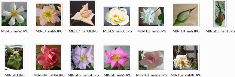 .Ich hab aber im Folgejahr mit MB weitergemacht, hier mal eine Übersicht, links stehen die Vaterrosen, Mutter ist immer MB. Erst kann man lesen wieviele aus den jeweiligen Kreuzungen gekeimt sind, wobei F für Freiland steht, denn die (Fensterbrettler