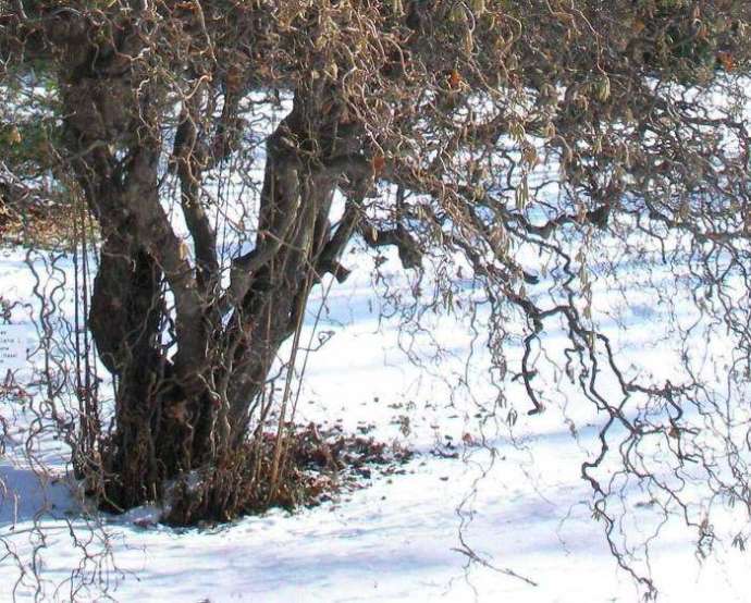 Hier eine etwas verwachsene Trauerweide. Das linke "Knie" ist kein abgestorbener Ast, sondern eine Wurzel, die aus einem alten abgestorbenen Stumpf entsprungen ist.