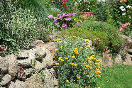 Wor haben eine recht "unruhige Fuge" vor 2 Feldsteinmauern, eine davon begrenzt unseren Vorgarten zum Bürgersteig.Dort habe ich im letzten Jahr erstmalig Kalifornischen Mohn in gelb und orange ausgesäat... es sah einfach nur wunderschön aus..Hier mal ein Bild der Feldsteinmauer im Garten, Fugenbreite irgendwas von 5 cm..Eva-Maria
