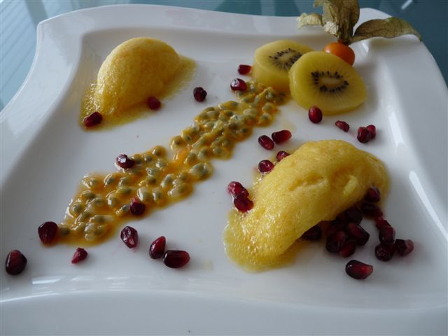 also ich glaube kiwi, physalis, granatapfel und passionsfrucht (?) zu erkennen.