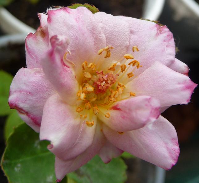 Da Deine Rosen unter Bedingungen heranwachsen, die ihnen als Freilandrosen nicht zusagen sind Mt, Nekrosen und andere Wachstumsbeeinträchtigungen nicht ungewöhnlich. Die Farbgebung und Aufbau der Blüte hat etwas "wildrosenartiges". Ich würde sie gerne ein Jahr im Freiland beobachten. Findest Du da nicht eine Möglichkeit???