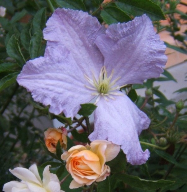 Die Cl.integrifolia Durandi ist auch eine ganz schöne blaue, lang blühende Clematis. Habe sie erst 2008 hier her umgesetzt. Vorher war eine Cl.viticella da an dem Rosenbogen, die hat mir die ganze Rose zugewuchert. Die Rose Super Excelsa kommt jetzt viel mehr zur Geltung mit der kleineren Clematis Durandi.lg. elis
