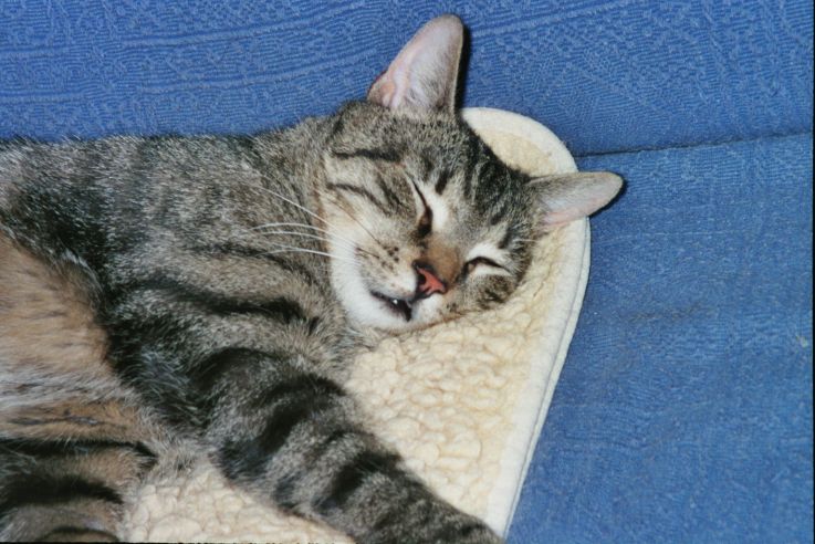 Von 1977 bis 1990 hatten wir auch eine Grautigerin, die sah fast so aus wie die Katze auf der Brekkies-Packung: vier weiße Füßchen und ein weißer Latz