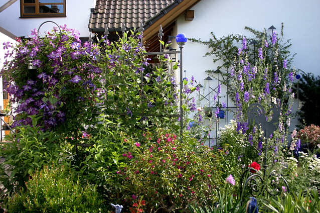 Traumhaft! Ich glaube, diesen Halt braucht man jetzt, denn in den nächsten Tagen wird es noch mal richtig kalt und ich hab den Winter soooo satt!@elis: Herrliche Farben in einem tollen Garten sind das! Auch Deine Clematisbilder haben mir sehr gut gefallen. Und hier noch eins in Sachen Farbenrausch. Es ist von der anderen Seite fotografiert und schon beinah der halbe Garten