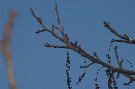 Beide Vorschläge haben ja so herunterhängende Blüten-/Früchte, aber wichtig für die Bestimmung von Gehölzen im Winter sind v.a. auch die Knospen und die Rinde. Wenn du dich da erinnerst und mit den Links vergleichst oder noch ein Bild machen könntest?