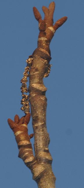 Beide Vorschläge haben ja so herunterhängende Blüten-/Früchte, aber wichtig für die Bestimmung von Gehölzen im Winter sind v.a. auch die Knospen und die Rinde. Wenn du dich da erinnerst und mit den Links vergleichst oder noch ein Bild machen könntest?