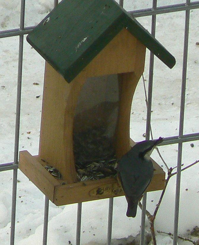 Der Kleiber ist zwar oft zu sehen, aber schwierig zu fotografieren: husch zum Futterplatz und "husch" wieder zurück an den Stamm .Ich bitte, die schlechte Qualität der Fotos zu entschuldigen: alle Aufnahmen sind durch die Fenster erfolgt und die Lichtverhältnisse lassen heute mal wieder zu Wünschen übrig.