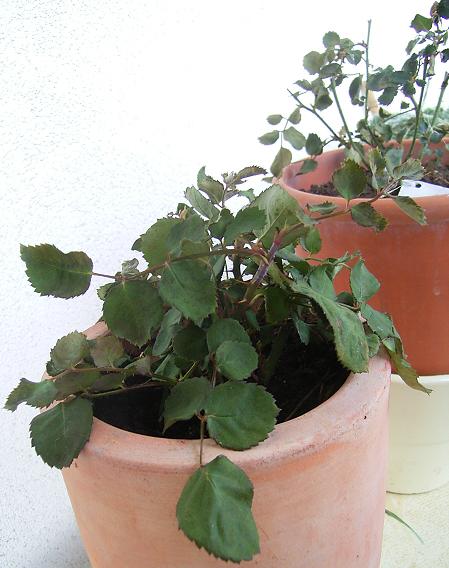 Rudi, wenn Du mal in D bist, gibst Du mir die Adresse und ich schick sie Dir, ok?da ich keine besseren Fotos hab, hat sie auch nicht besser ausgesehen, das war die einzige Blüte, ich denke, die ist einfach nicht so gelungen... dieses Bild hab ich noch, auch nicht schön.Da Deine Rosen unter Bedingungen heranwachsen, die ihnen als Freilandrosen nicht zusagen sind Mt, Nekrosen und andere Wachstumsbeeinträchtigungen nicht ungewöhnlich. Die Farbgebung und Aufbau der Blüte hat etwas "wildrosenartiges". Ich würde sie gerne ein Jahr im Freiland beobachten. Findest Du da nicht eine Möglichkeit???