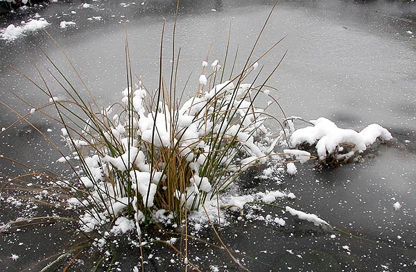 Wollen die Seerosen unter dem Eis schon austreiben oder sind es noch die alten Blätter, oder sind es gar keine Seerosen?Das war der Sommer 2009, jetzt ist er gramgebeugt