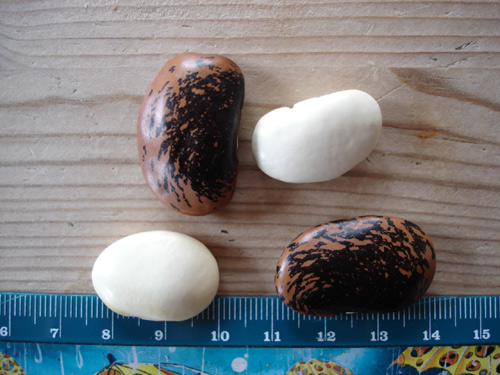 Hier ein Foto von den Käferbohnen. Dabei sind relativ grosse weisse Bohnen, die wahrscheinlich auch Feuerbohnen sind.