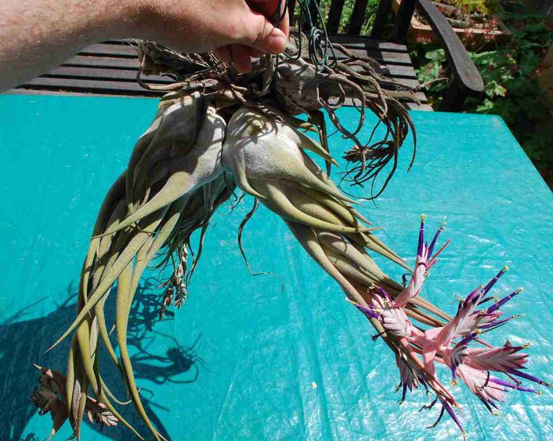 Mit Freude und Wehmut schaue ich die Bilder an......Von ca 1985- 1998 hatte ich eine sehr grosse Tillandsiensammlung.'98 habe ich bei einer Neuerwerbung unbemerkt Tillandsienschildläuse eingeschleppt, die sich sehr wohlgefühlt haben in meiner Sammlung. Als eine nach der anderen Pflanze einging, war es zu spät für die komplette Sammlung. Nicht eine hat es überlebt.