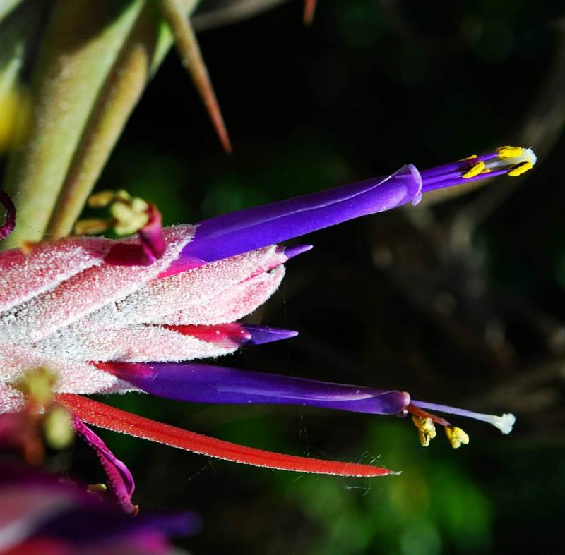 Eine andere rotblühende Art ist Tillandsia funckiana. Beide Arten sind nicht so stark beschuppt wie zum Beispiel T. ionantha und brauchen es daher luftfeuchter.