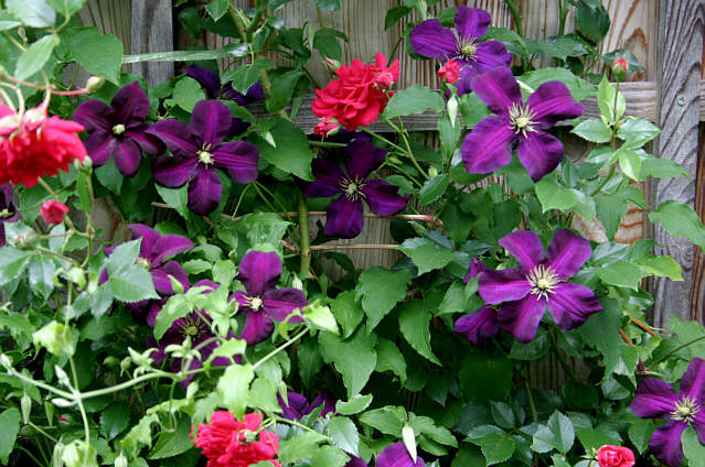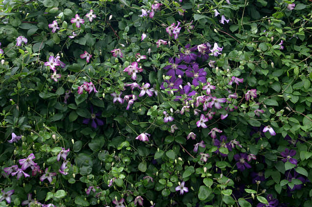 Hallo rhabarbarum !Ich mache es auch so mit dem zurückschneiden. Schneide im Dez. so in 30cm Höhe alles ab und das rausreißen mache ich mal im zeitigen Frühling, wenn man draußen schon mal was tun will. Das geht eigentlich ganz schnell. Du schreibst, Du willst Clematis die im Juli-August blühen. Das machen doch die viticella-Sorten. Auch die Cl.integrifolia-Sorten blühen lange.Ja, vor der Cl.vit.Emilia Plater ist ein Phlox. Den habe ich im Frühling dort hingesetzt weil ich nicht wußte auf die Schnelle wohin damit. Aber er ist schon grell, werde ihn wieder wegsetzen. Mit dem zurückschneiden der Clematis habe ich auch Erfahrungen gemacht. Manchmal ist es doch so wenn eine viticella zu wild ist und mir irgendwo im Weg umgeht dann schneide ich einfach was weg. Dann habe ich bemerkt, daß es wieder stark austreibt und dann später wieder zum blühen kommt. Das werde ich dieses Jahr gezielter ausprobieren. Das ist auch eine gewagte Kombination.lg. elis