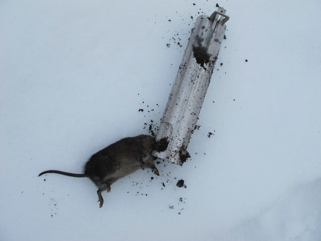 Nein, einfach so, ohne Köder. Die Maus darf gar nicht merken, dass da etwas im Gang ist. Wenn sie wie auf dem Bild getroffen ist, ist alles optimal gelaufen. Der Schlagzylinder hat sie im Nacken erwischt. Nach anfänglichen Schwierigkeiten bekomme ich es jetzt gut hin. Im Extremfall hat die Falle zugeschnappt, als ich noch keine 10 Meter weggegangen war. Im Herbst/Winter scheint es auch wesentlich einfacher zu sein die Tiere zu fangen als im Sommer. Wenn man im Frühjahr wühlmausfrei in die Saison startet, ist das sehr beruhigend.Mit Nuss-Schokolade als Köder oder tut's auch was Anderes? Ich werde nun wohl doch den Kampf aufnehmen, den ich eigentlich schon vor Jahren aufgegeben hatte.