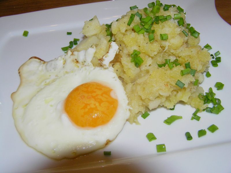 bei uns gabs was leichtes. petersilienwurzel-steckrübenpüree mit spiegelei