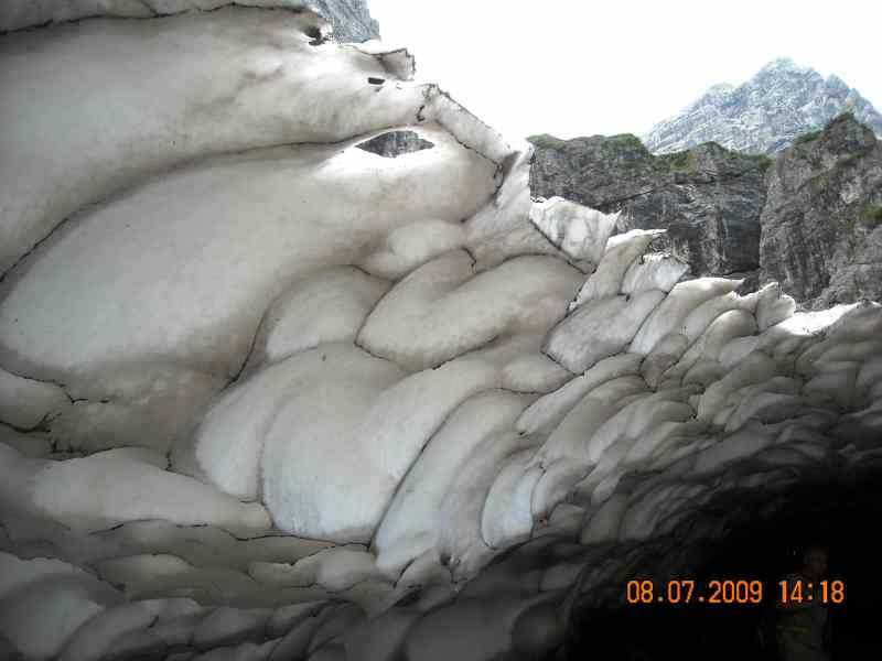 wie stabilisierend die kristallstruktur und darüber hinaus der eigentümlich geschichtete aufbau wirken kann, sahen wir letzten sommer bei einer wanderung in ein kar am fuß des toten gebirges an einem mächtigen lawinenkegel!Setzt man eine genügend große Fläche voraus, kann eine Schneeschicht nicht mehrere Zentimeter über dem Boden schweben, sie muss schon aufgrund der Schwerkraft nach unten fallen. Die Kristallstruktur kann allenfalls lokal stabilisierend wirken.