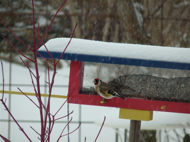 Ich habe ganz schön gestaunt, als ich heute früh aus dem Fenster schaute, da im Wetterbericht gestern Abend bei uns von ein bis fünf cm die Rede war.Am Futterhäuschen tummeln sich wieder viele Spatzen, Kohlmeisen, Buchfinken...Es hat jetzt aufgehört zu schneien.LGMirjam