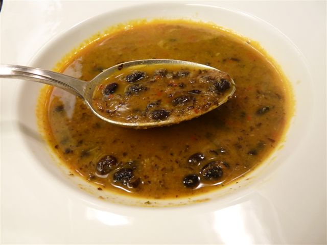 Hier gab's den letzten Rest Hühnersuppe, und weil's ziemlich wenig war, zum Nachtisch Vanillepudding.